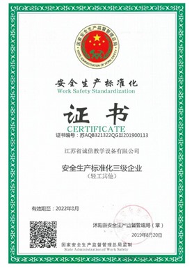 江蘇省誠(chéng)信教學(xué)設(shè)備有限公司成立于2003年,是一家專注教學(xué)設(shè)備研究開發(fā)、生產(chǎn)制造、銷售服務(wù)為一體的綜合性教育、服務(wù)型企業(yè),是江蘇省教育設(shè)備行業(yè)協(xié)會(huì)會(huì)員單位、中國(guó)教育裝備行業(yè)協(xié)會(huì)會(huì)員單位,公司先后通過ISO9001國(guó)際質(zhì)量管理體系認(rèn)證、IS14001國(guó)際環(huán)境管理體系認(rèn)證、OHSAS18001職業(yè)健康安全管理體系認(rèn)證。數(shù)十年的激勵(lì)前行鑄就企業(yè)優(yōu)質(zhì)的產(chǎn)品品質(zhì)和服務(wù)質(zhì)量。